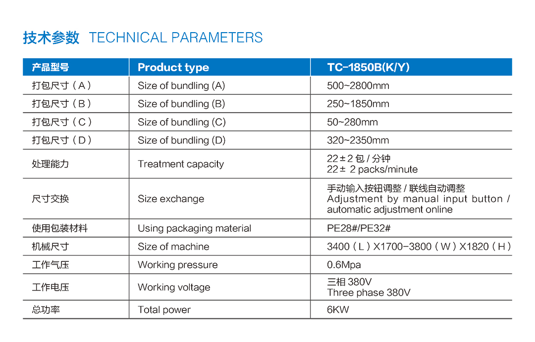 TC-1850B(K/Y)型瓦楞紙板捆綁機(jī)為推板推入送紙結(jié)構(gòu),結(jié)構(gòu)承載力大,輸送定位精準(zhǔn)、采用plc控制,人機(jī)界面調(diào)節(jié)參數(shù)配合十字開(kāi)關(guān)調(diào)整和聯(lián)機(jī)自動(dòng)換單調(diào)整兩種模式,多元化換單調(diào)整操作,可根據(jù)相關(guān)單元分享數(shù)據(jù)自動(dòng)換單。打包相關(guān)動(dòng)力采用伺服電機(jī)驅(qū)動(dòng)、國(guó)際知名品牌氣動(dòng)元件,動(dòng)作流暢,性能穩(wěn)定,節(jié)能。
